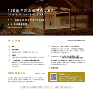 おかげさまで、本年で創業120周年を迎えることとなります。